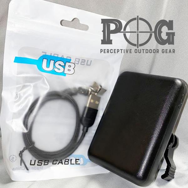Also included in this combo is a 19 inch magnetic charging cable to connect the battery to the optic. The cable has a straight USB plug on one end and the other end has a 90 degree swivel plug with a magnetic end that attaches to a magnetic USB C plug or USB Micro plug (Both are included).
